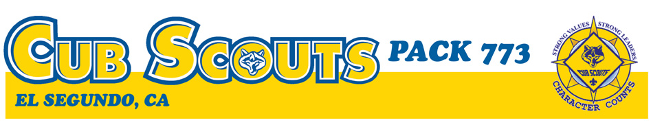 Cub Scouts Pack 773 Cub Scouts Pack 773 is a family and leadership led organization focused on providing fun, enriching scouting experience. Pack 773 is located in El Segundo, California and meets at the El Segundo Scout House located at 325 E. Grand Avenue in El Segundo, CA. While we meet in El Segundo, we welcome boys and girls from any area. At Pack 773 our goal is to help young people build character. Kids can’t grow or develop by watching YouTube or playing videos games all day. They need to interact with kids their own age. They need to learn new skills. They need to get outside. They need actives that are both fun and challenging. Cub Scouts provides a safe, fun environment where kids can do all these things. Cub Scouts Pack 773, like all Cub Scout packs, isn’t made up of just kids. Cub Scouts is a family organization. The Pack is run by parent volunteers. Parents teach scouts how to tie knots and pitch tents, but the more important lessons are values like honesty, kindness, and the importance of helping others. |